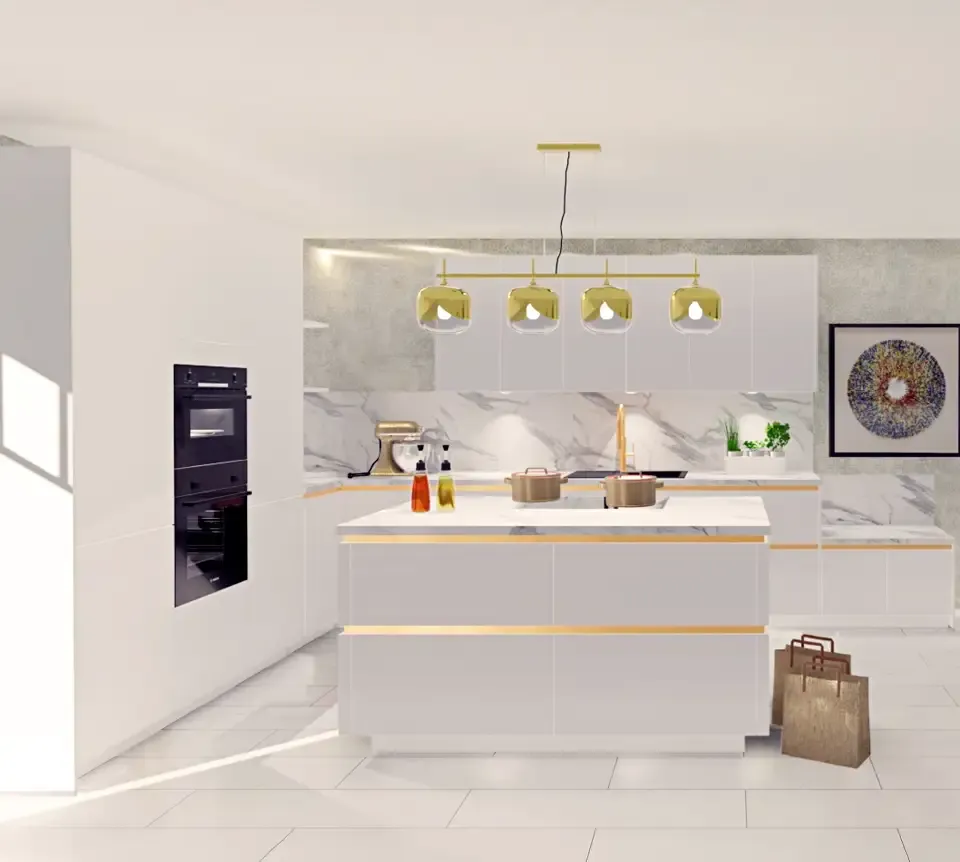 Der Glamour-Style ist ein Statement für alle, die glänzende Auftritte lieben. Mit edlen Oberflächen, luxuriösen Details und einer Präsenz, die sofort ins Auge fällt, wird deine hochwertige Küche zum echten Eyecatcher.